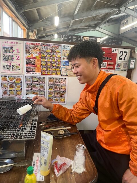 多分一番カキ小屋を満喫してたのは大野君ですね