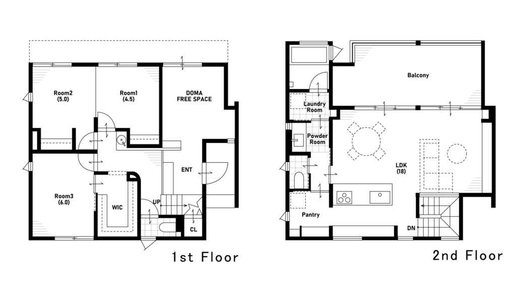 その立地を活かしてLDKや水回りなど、メインとなる生活空間を二階へ展開。